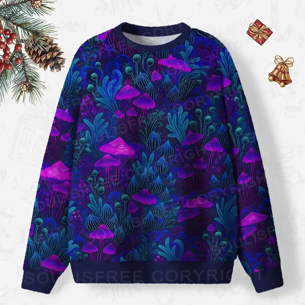 Enchanted Neon Forest Ugly Christmas Knit Sweatshirt