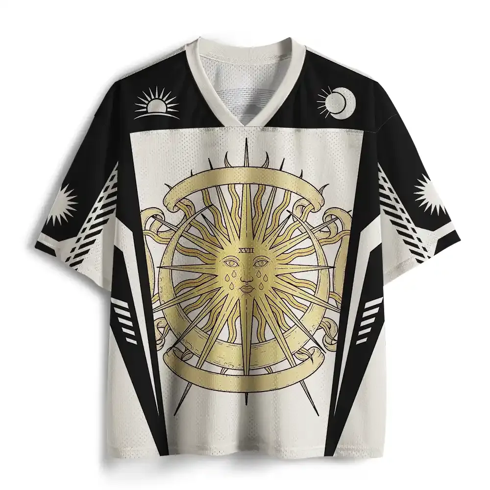 This oversized graphic jersey features a classic V-neck design and bold lettering for a modern yet sporty look. The short sleeves and relaxed fit make it perfect for casual wear or street style. Made from soft mesh fabric, it’s breathable and ideal for warm weather, with a comfortable, loose silhouette that flatters all body types.
